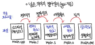 컴파일러는 이를 따로 컴파일해 합치기도 하지만, 어떠한 경우는 전처리 단계에서 파일을 합치고 컴파일하기도 함.