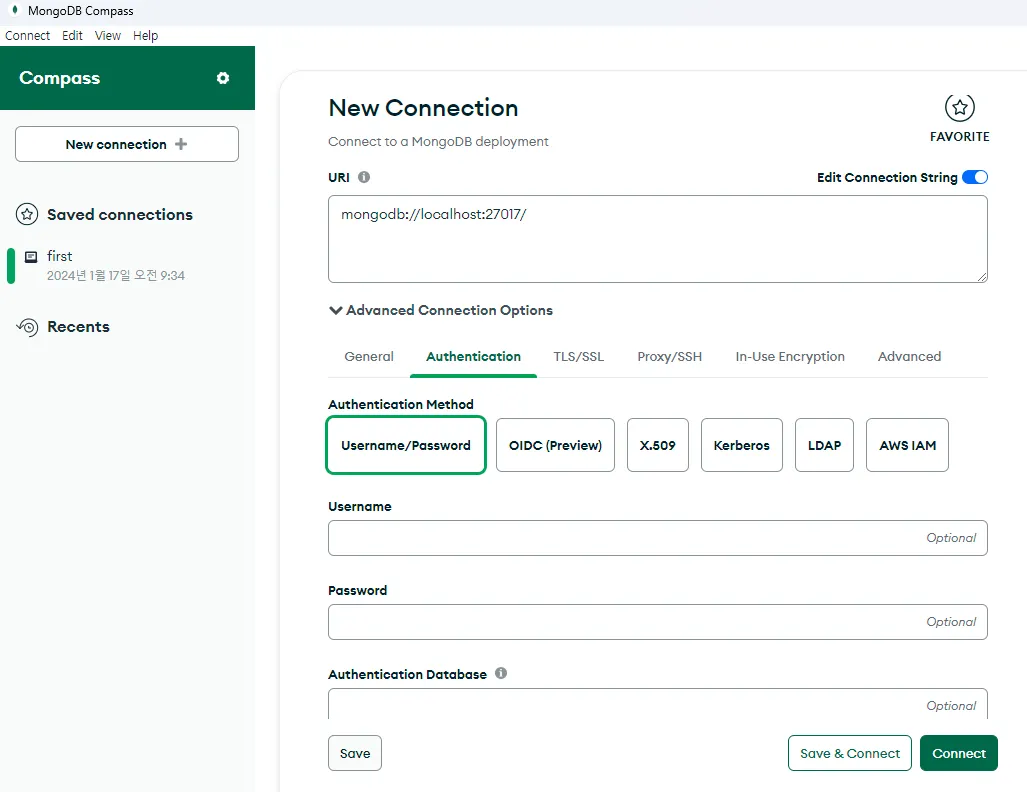 mongod.exe 콘솔을 종료한 후 cmd에서mongod --auth명령어로 접속. (--auth는 로그인이 필요하다는 의미.)