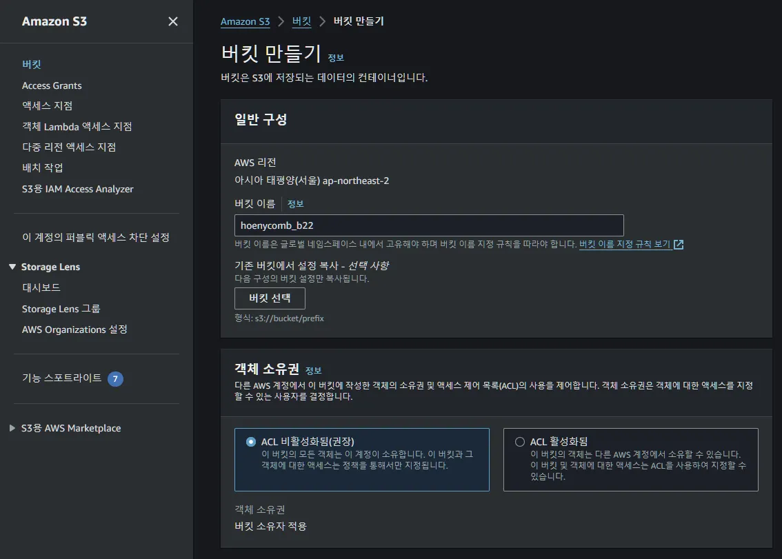 버킷 만들기