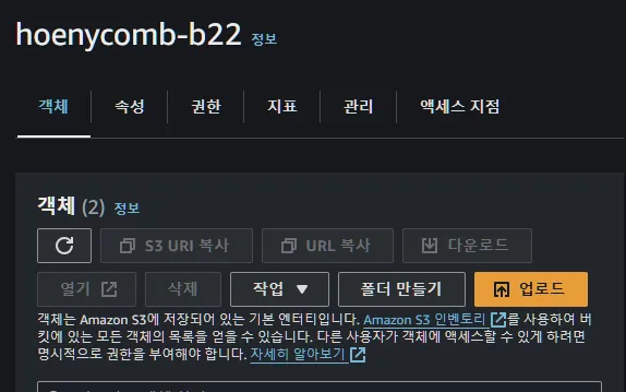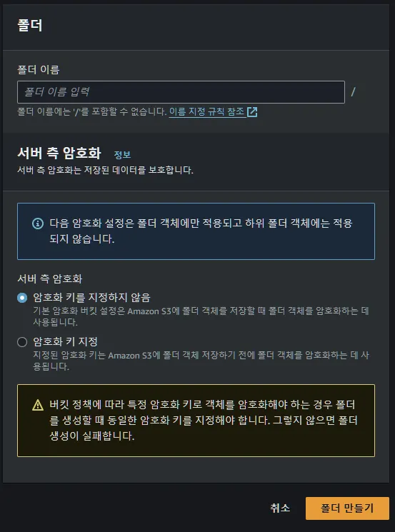 버킷에 들어가서 폴더 만들기