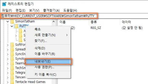 컴퓨터\HKEY_CURRENT_USER\SOFTWARE\SimonTatham\PuTTY