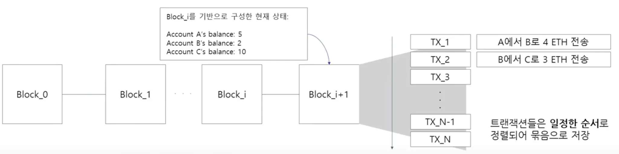 블록은 트랜젝션들을 일정한 순서로 정렬하여 저장하는 컨테이너