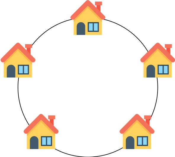 도둑이 어느 마을을 털 계획을 하고 있습니다. 이 마을의 모든 집들은 아래 그림과 같이 동그랗게 배치되어 있습니다.