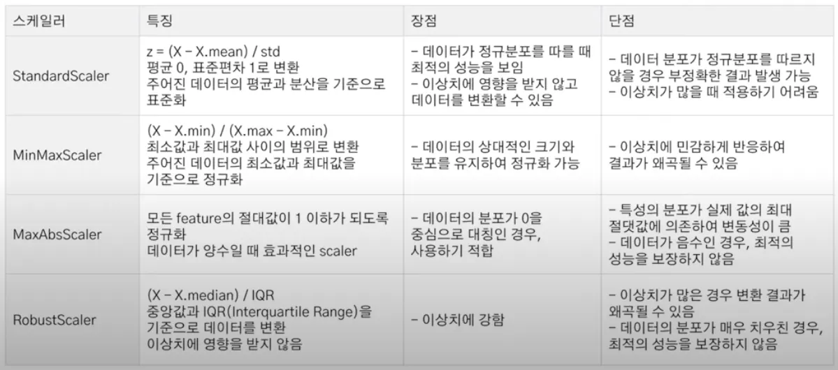 # fit : 학습 데이터의 분포를 분석하여 스케일링에 필요한 파라미터를 계산하고, transform 메서드는 이 파라미터를 사용하여 데이터를 변환