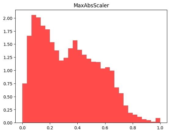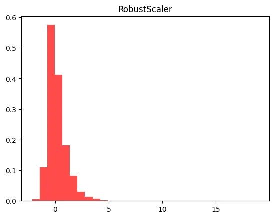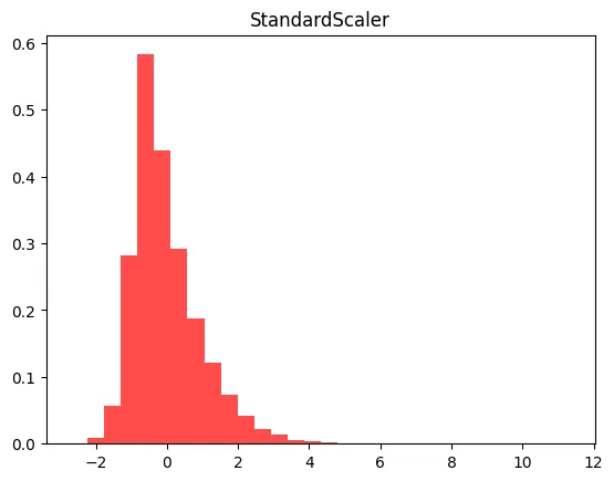 plt.hist(X_train_scaled_ss, bins=30, color= 'red', alpha = 0.7, density = True)