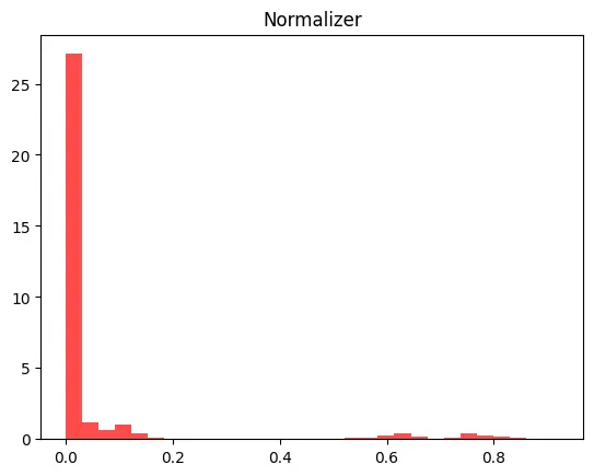 Normalizer 의 경우 각 샘플(행)마다 적용되는 방식