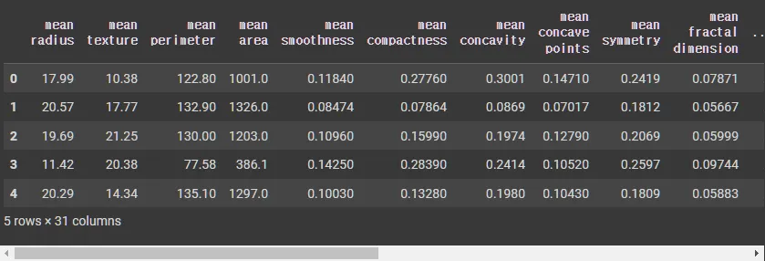 cancer_df = pd.DataFrame(data=cancer.data, columns=cancer.feature_names)