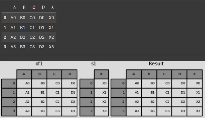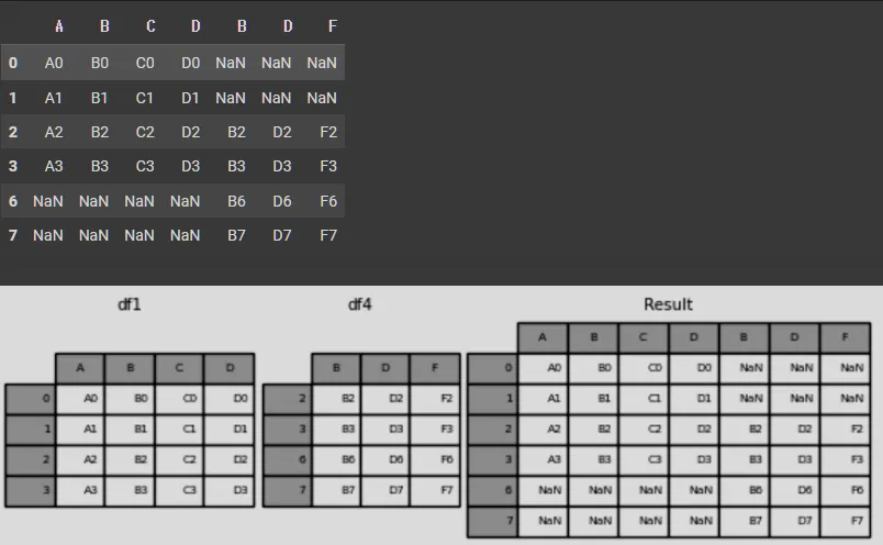 concat()은 SQL의 UNION과 비슷하게 데이터프레임을 위아래 또는 좌우로 결합할 수 있으며, 병합할 때 인덱스를 유지하거나 재설정할 수 있는 옵션을 제공