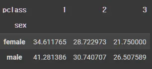 test = grouped.filter(lambda x : x.age.mean() < 30) # 그룹별 나이평균이 30미만인 그룹만 조회