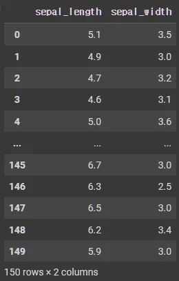 iris.loc[:,['sepal_length', 'sepal_width']]