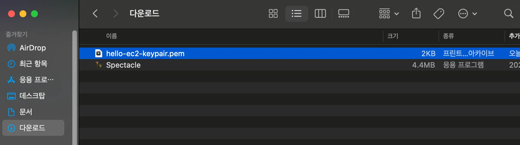 key pair 파일 확인