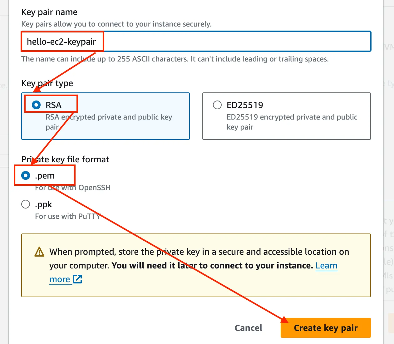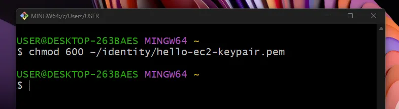 chmod 600 ~/identity/hello-ec2-keypair.pem