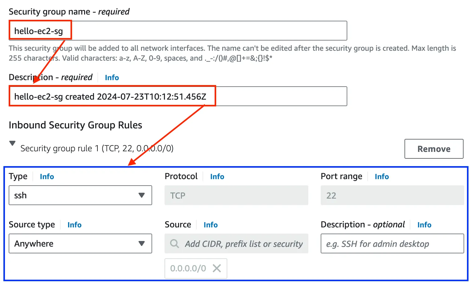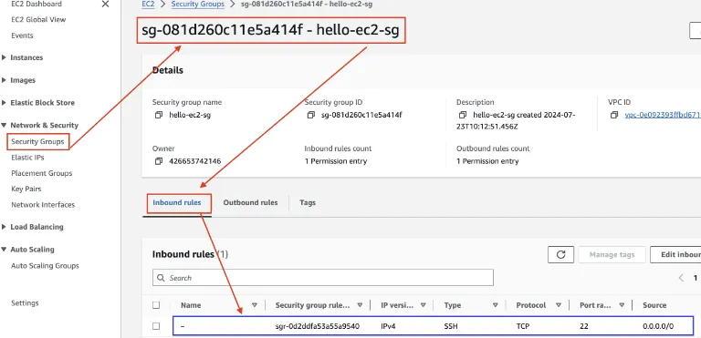 Inbound Security Group Rules: ssh 확인