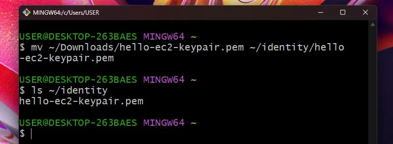 mv ~/Downloads/hello-ec2-keypair.pem ~/identity/hello-ec2-keypair.pem