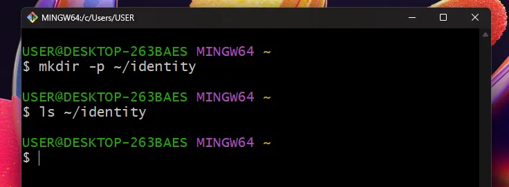 mkdir -p ~/identity # 폴더 생성