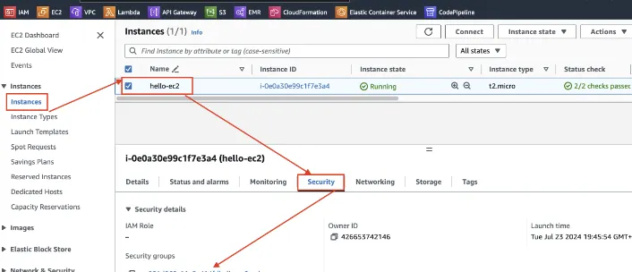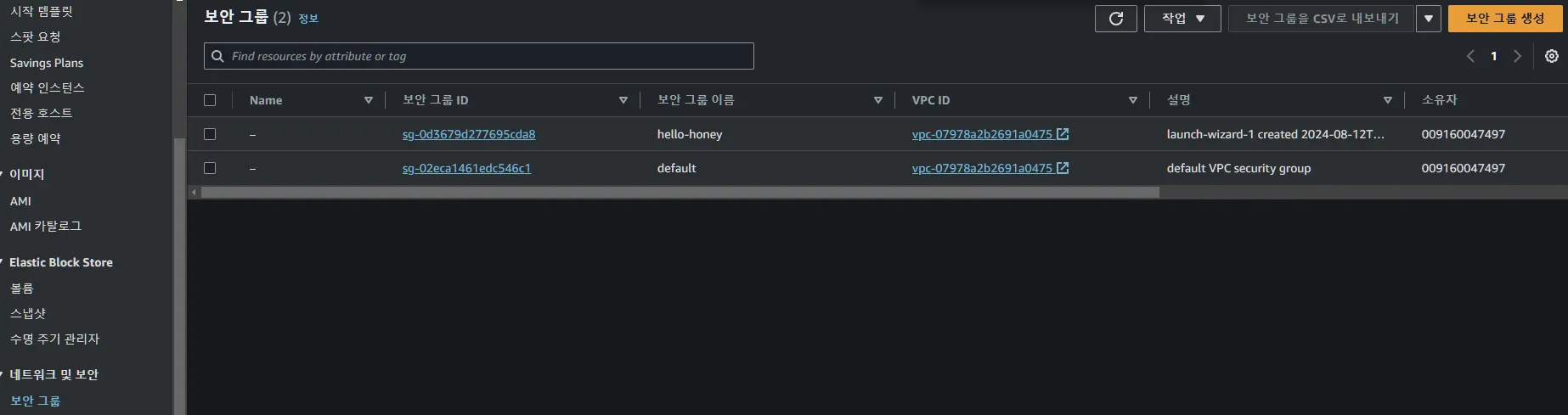 Instance의 Security Group 확인
