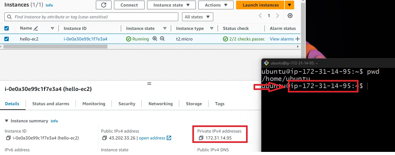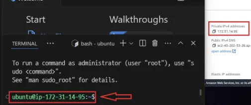 Private IP와 Shell에 표시된 IP가 같은지 확인