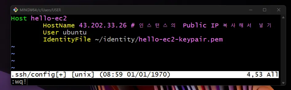 IdentityFile ~/identity/hello-ec2-keypair.pem