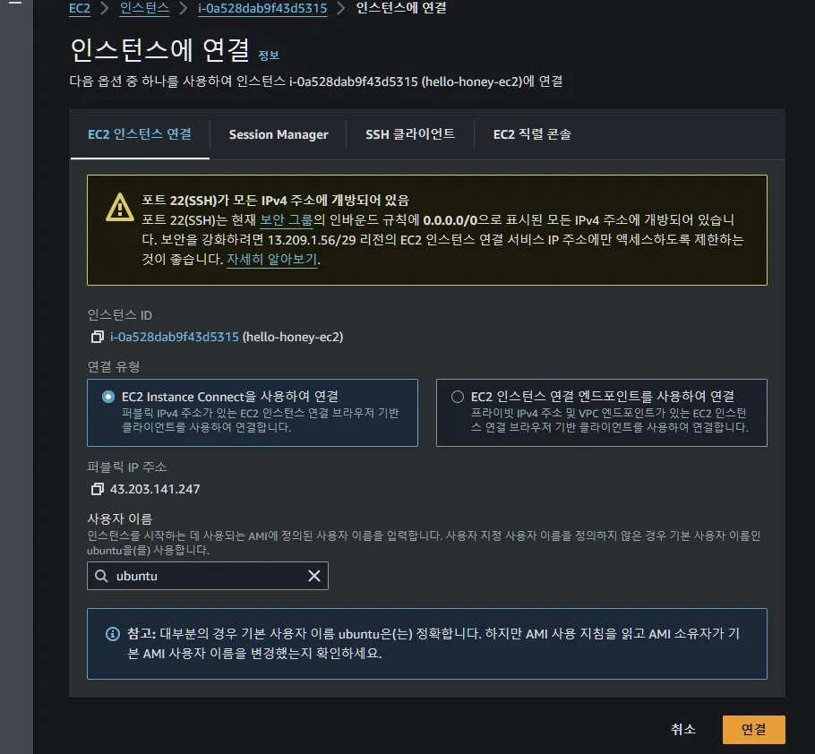 AWS 인스턴스에서 연결