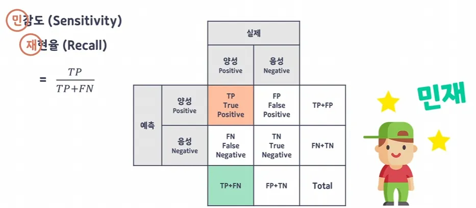 민감도(Sensitivity) / 재현율(Recall)