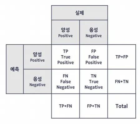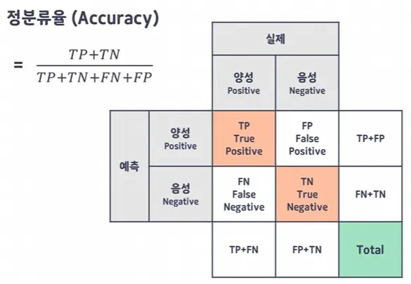 거짓(False) : 실제값과 예측값이 다른 경우