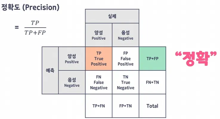 모델이 양성으로 예측한 값들 중 정확하게 양성으로 예측 한 값