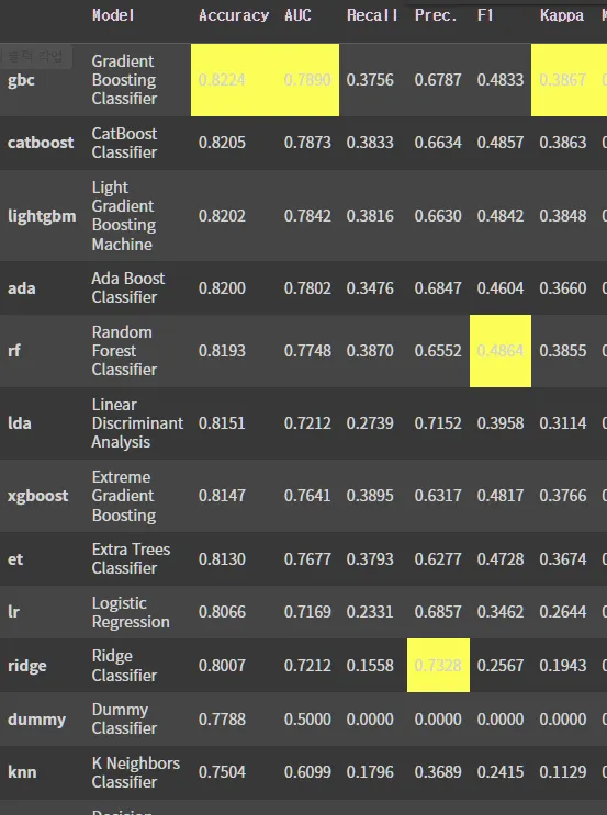 여러 모델을 비교할 수 있으며, 각 모델 별로 튜닝을 진행할 수도 있다.