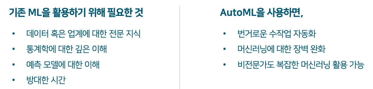 무엇보다도 전문 인력이 부족한 조직에서 AutoML의 기능을 활용하면 효율적인 데이터 분석을 할 수 있다.
