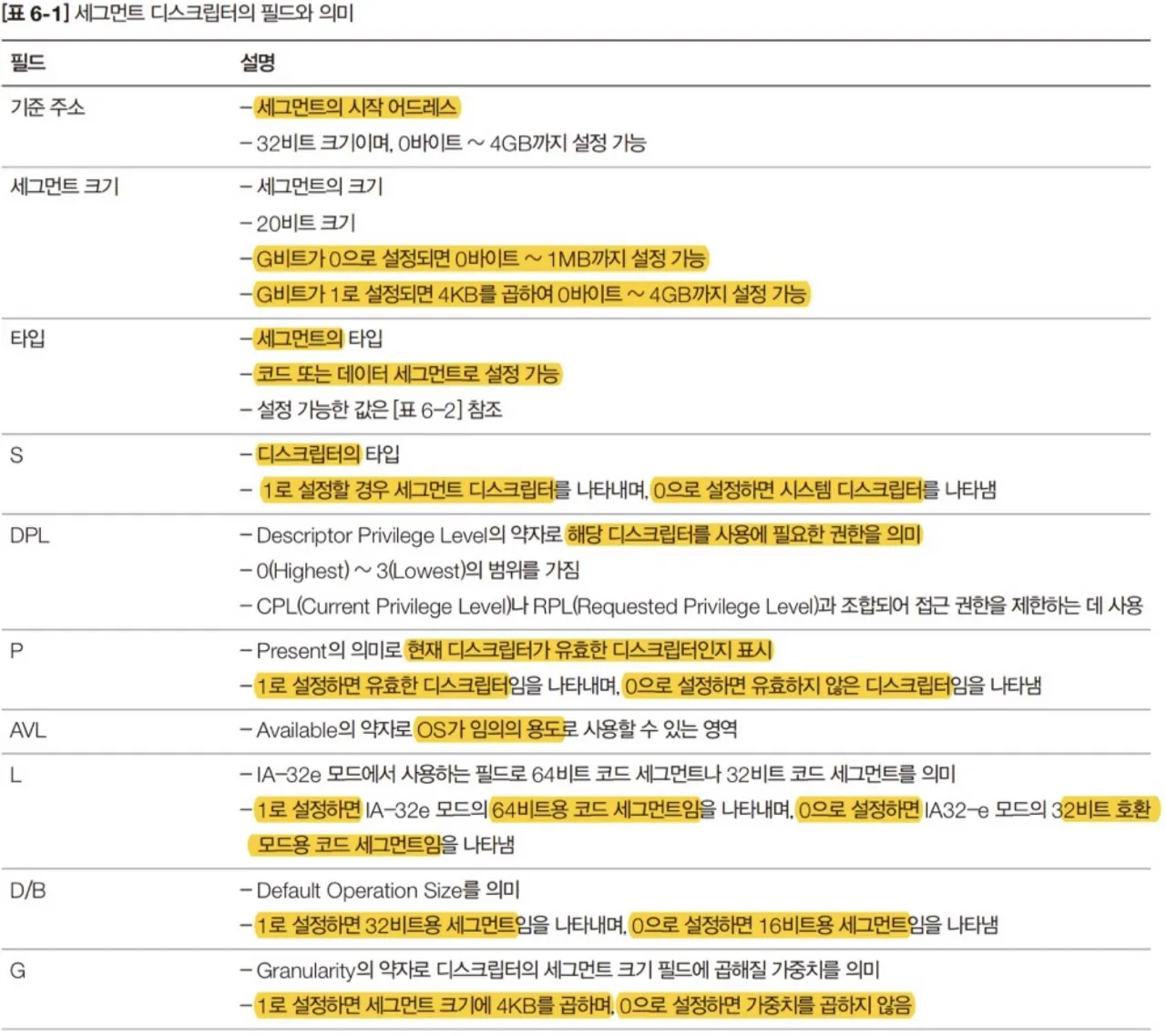 → 세그먼테이션 : 세그먼트 레지스터에 어떠한 세그먼트의 시작 주소 혹은 디스크립터(Descriptor)라고 불리는 자료구조의 위치를 설정