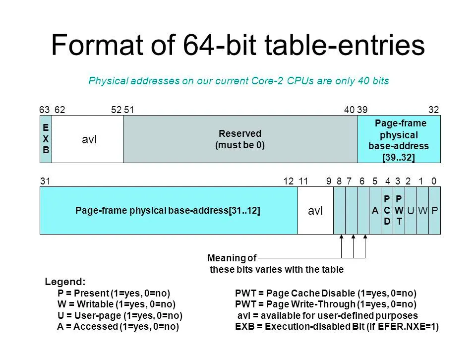 bit 40 ~ bit 51 까지는 모두 0으로 예약, bit 0 ~ bit 39까지 총 40bit 물리 메모리 사용가능