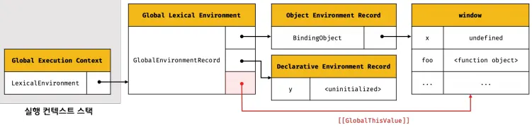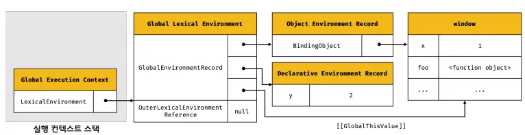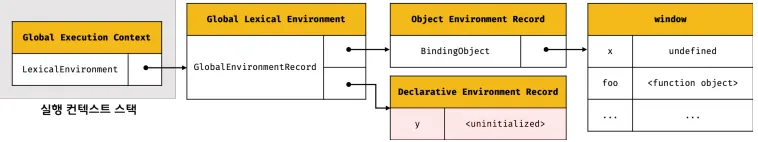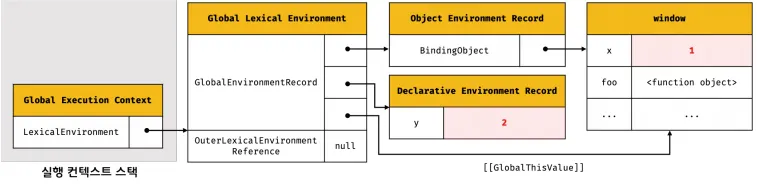 선언적 환경 레코드 : let, const 키워드로 선언한 전역 변수 관리.