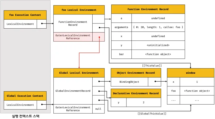 이때 이 렉시컬 환경의 외부 렉시컬 환경에 대한 참조는 전역 렉시컬 환경을 지침.