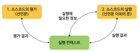 소스코드의 평가와 소스코드의 실행의 과정을 나누어서 진행
