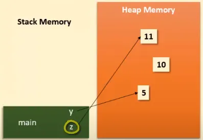 10을 가리키는 참조자(래퍼런스)가 0이 되면서 heap 메모리에서 10객체도 사라지게 됨.
