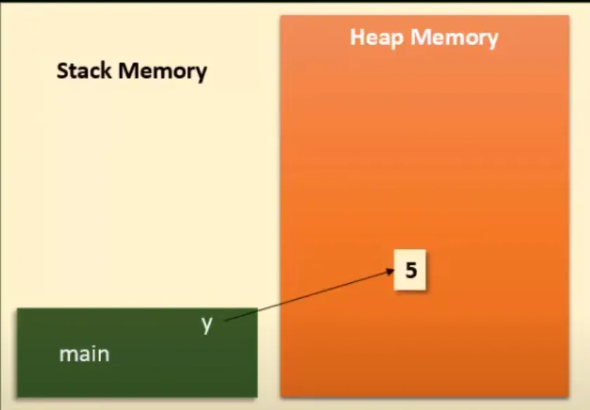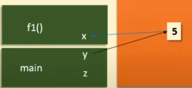 f1 함수에 y가 참조하는 5가 전달되게 되면서 f1의 매개변수(x)는 5 객체를 지침