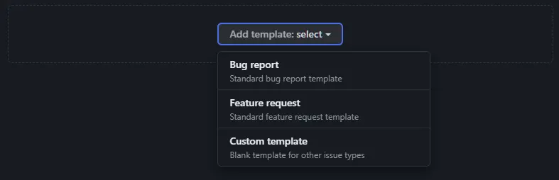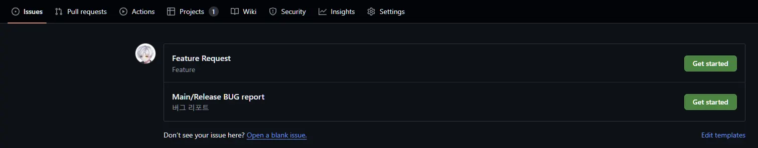 이슈가 생성되면 이렇게 템플릿을 선택할 수 있다.