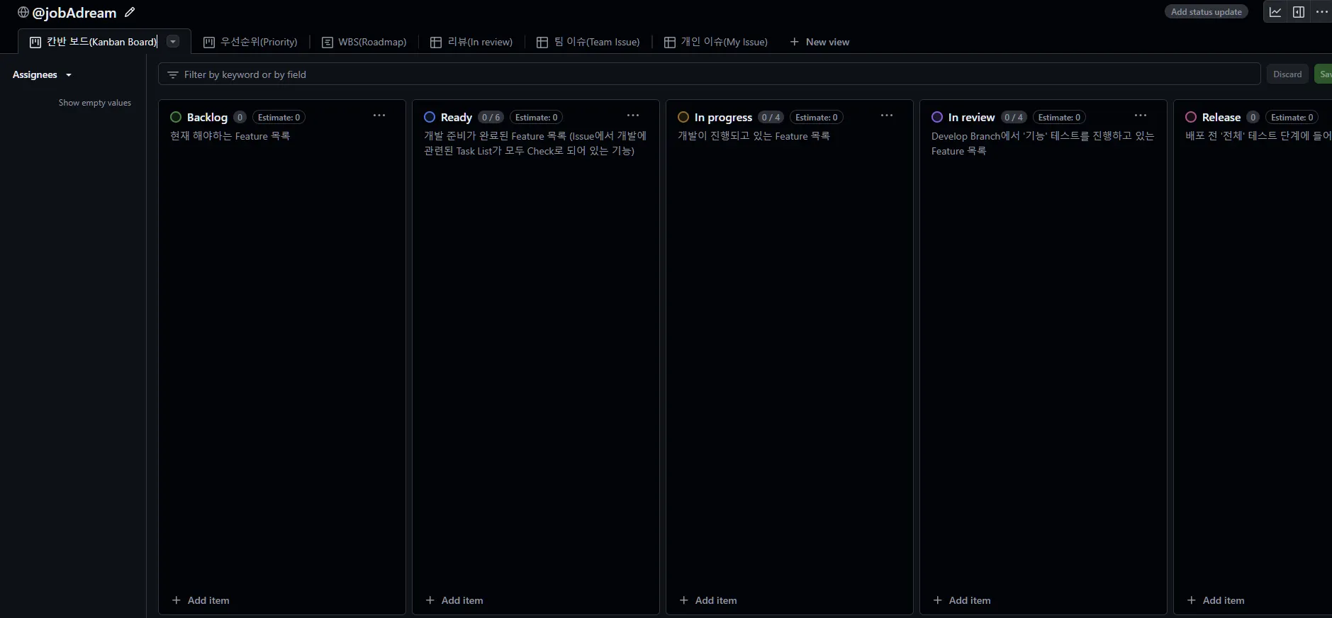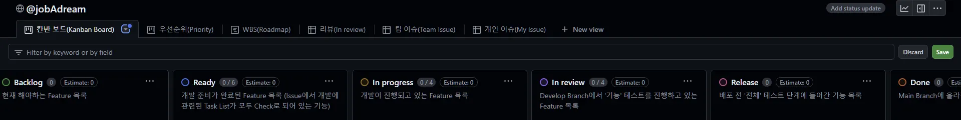 본 프로젝트는 프로젝트 협업이 처음인 팀원들이 많아 알기 쉽게 각 패널 및 열에 대한 설명을 한글로 작성해놨다.