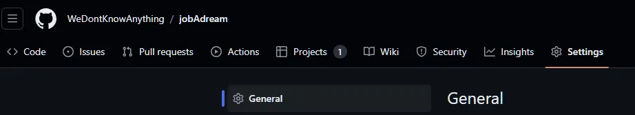 해당 레포지토리의 Settings의 General 탭으로 들어간다.