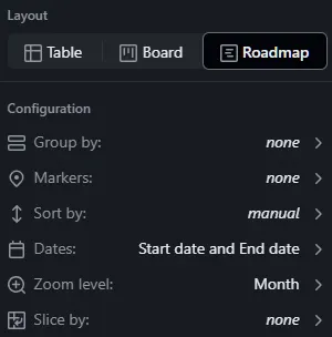 Start Date, End Date : 시작~종료 날짜 (Roadmap에 반영)