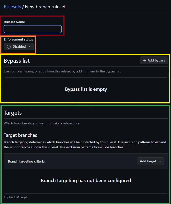 Targets : 타겟이 되는 브랜치(룰이 적용이 되는)