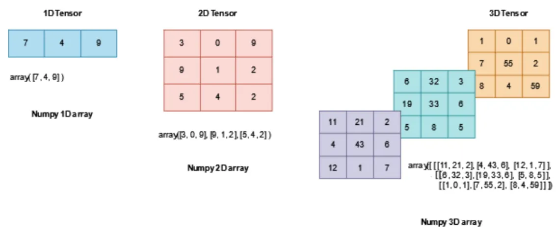 다차원 구조: 텐서는 0차원(스칼라)부터 여러 차원(다차원 배열)까지 다양한 구조를 가질 수 있습니다. 이를 통해 복잡한 데이터를 효율적으로 표현할 수 있습니다.