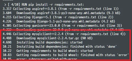 ERROR: failed to solve: process "/bin/sh -c pip install -r requirements.txt" did not complete successfully: exit code: 1