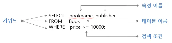 복합조건 | AND, OR, NOT | (price < 20000) AND (bookname LIKE '축구의 역사') |