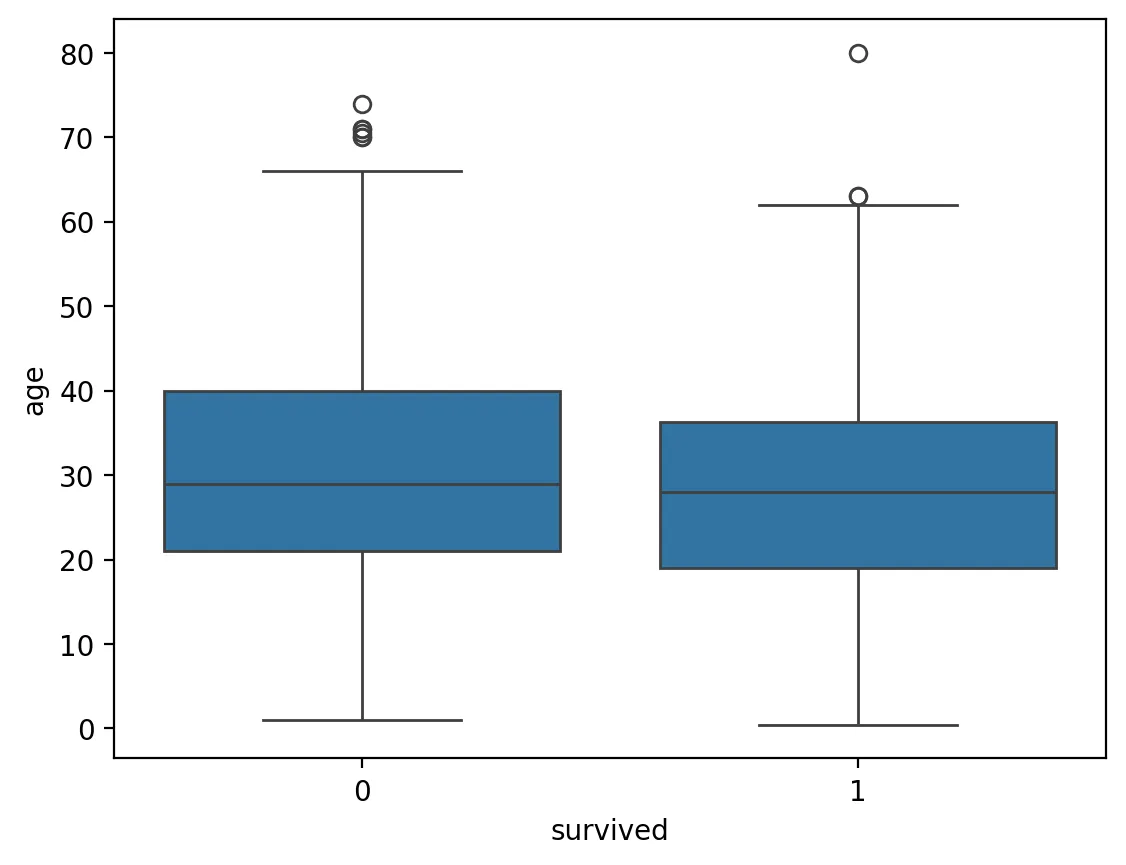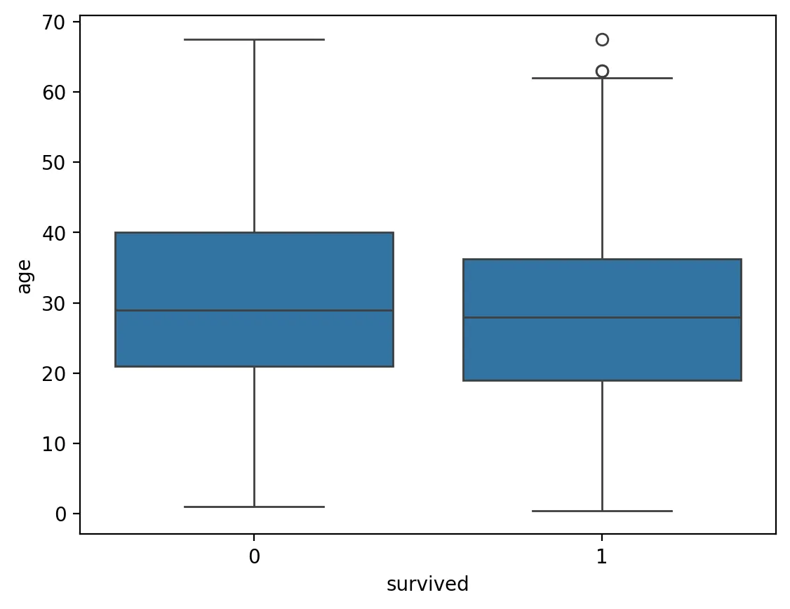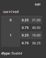 df.groupby(['survived'])['age'].quantile([0.25, 0.75]) # 분위수 계산