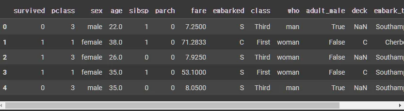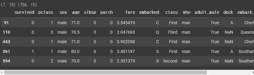 # .fillna(embarked_mode): embarked 열에서 결측치(NaN)를 embarked_mode로 대체