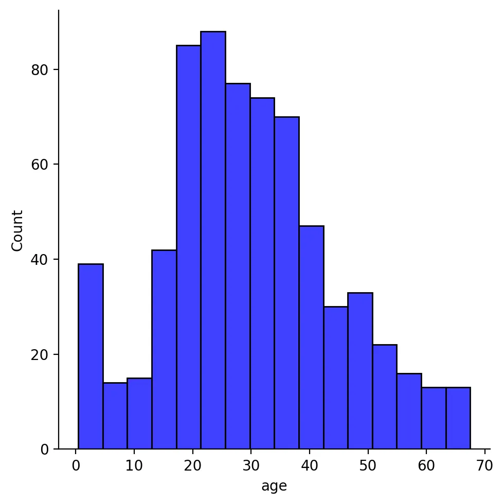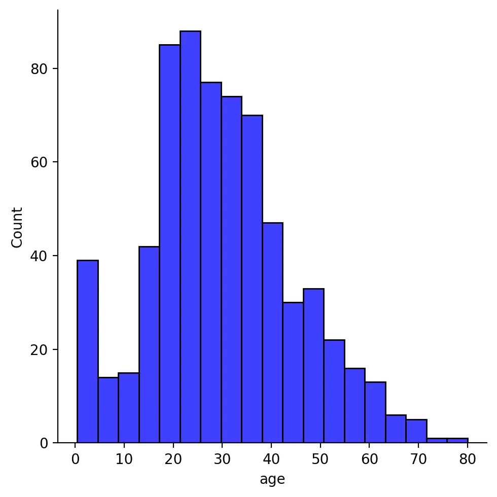 sns.displot(df["age"], color="b", label="Skewness : %.2f"%(df["age"].skew()))