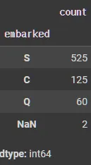 embarked_mode = X_tr['embarked'].mode().values[0]