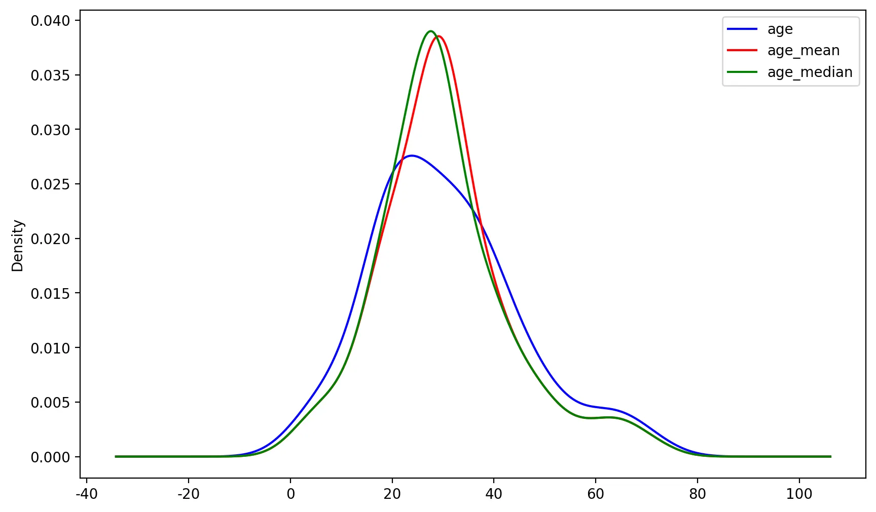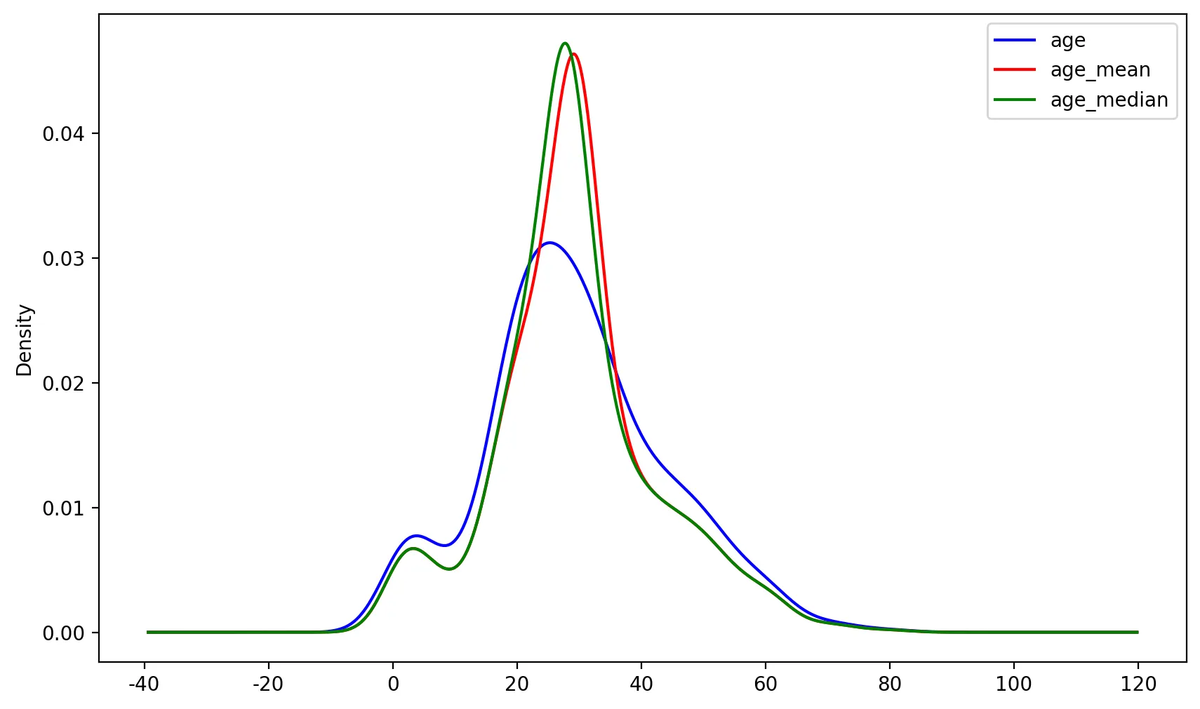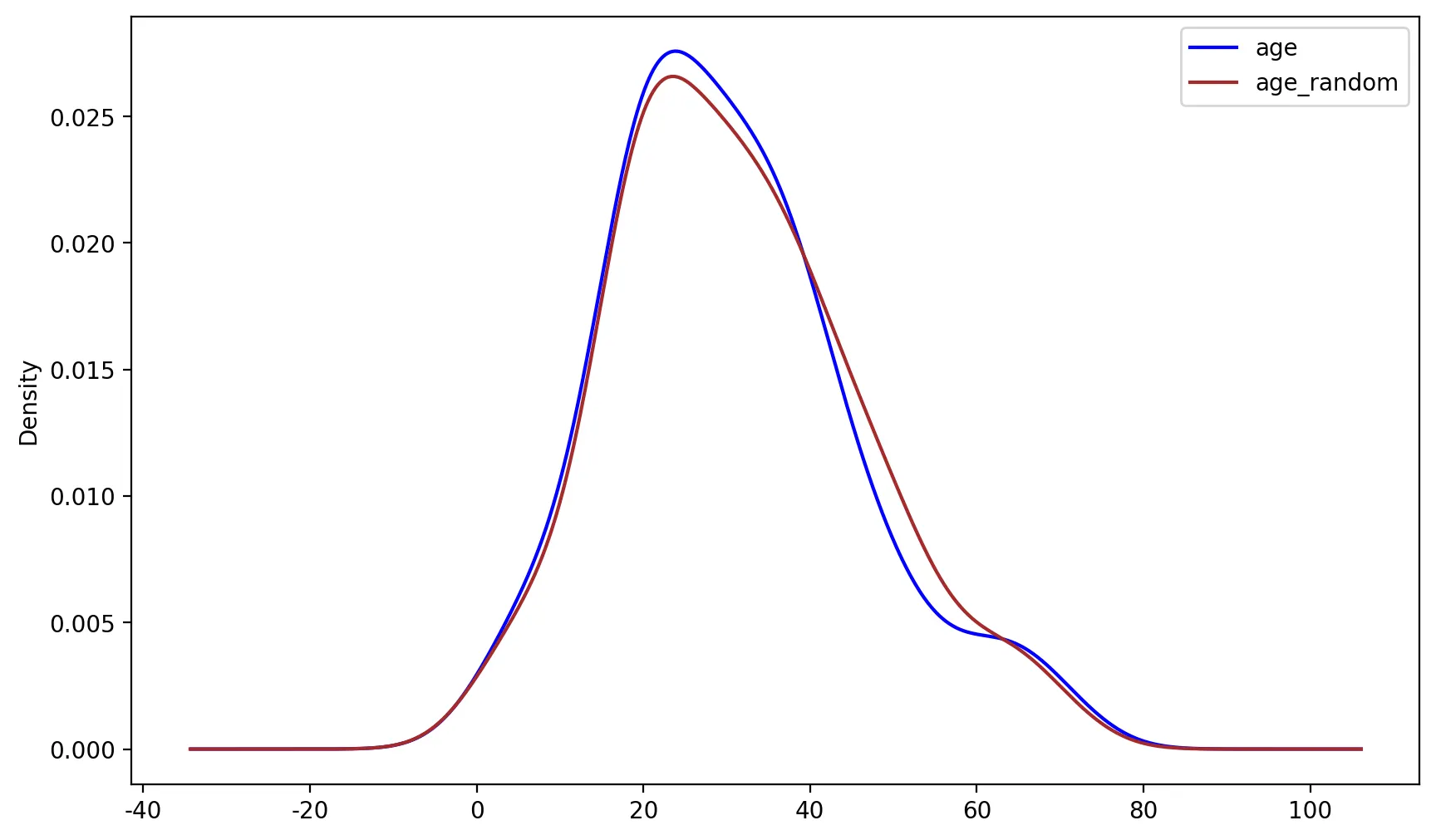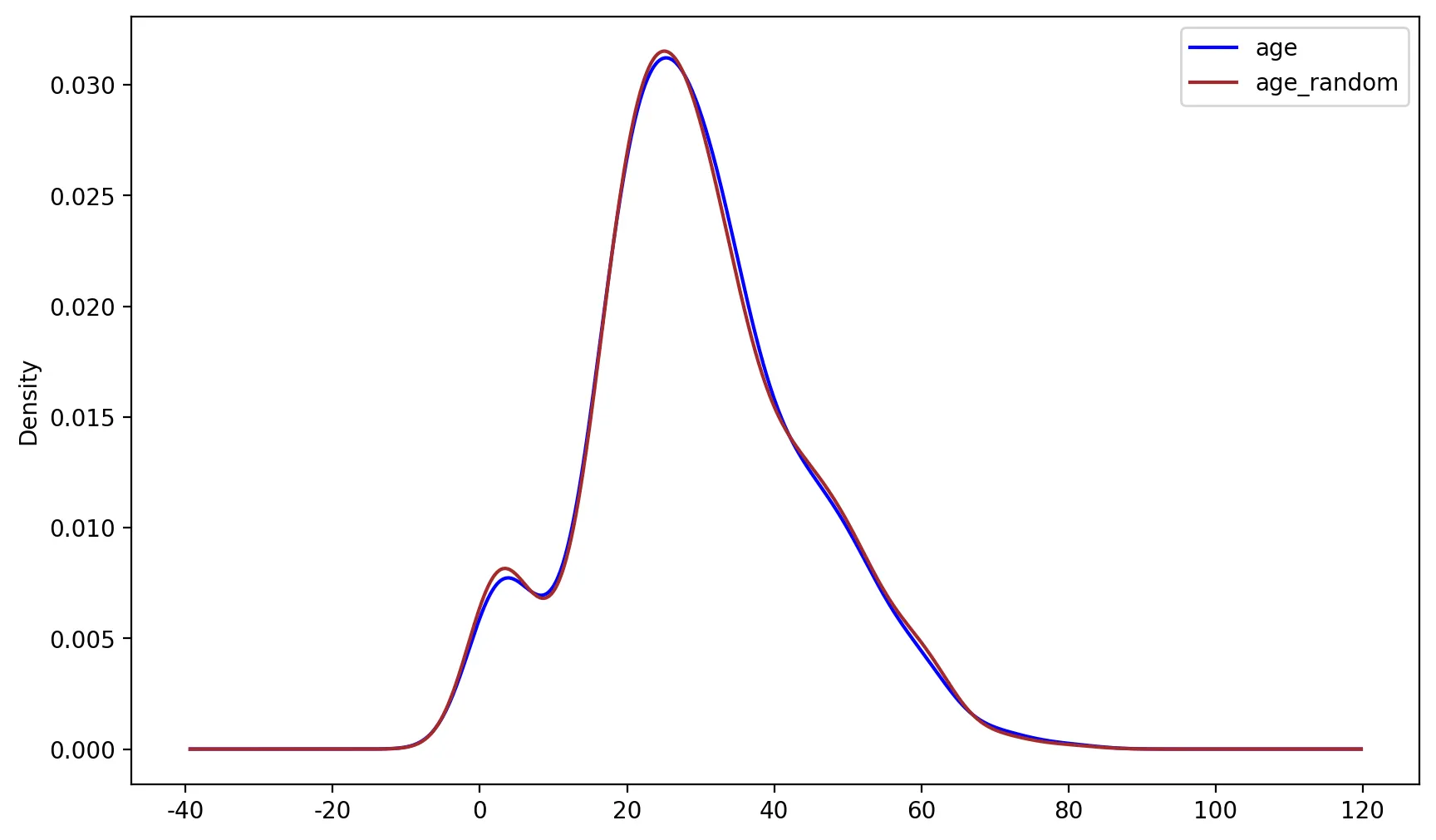위의 그래프를 보면 mean/median과 달리 random sample imputation의 경우 원래의 분산 및 분포를 보존한다는 장점을 확인할 수 있다.