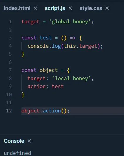 console.log(this.target); // global honey