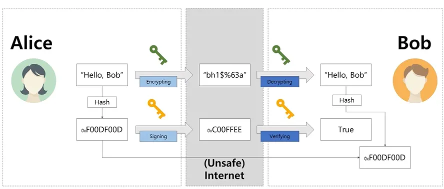 공개키는 서명이 짝을 이루는 비밀키로 생성되었는지 검증